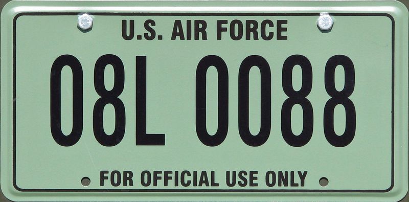As matriculas federais da força aérea dos Estados Unidos (USAF), ao fim de 8 anos têm de ser substituidas por outras. A data do fim de validade está na matricula. A matrícula começa com o prefixo da agencia (neste caso AF = Air Force [Força Aérea]), seguido de 2 números que indicam o ano do veículo (neste caso 07 = 2007), seguido de uma letra indicando a categoria do veículo, e por fim o número de registo.
